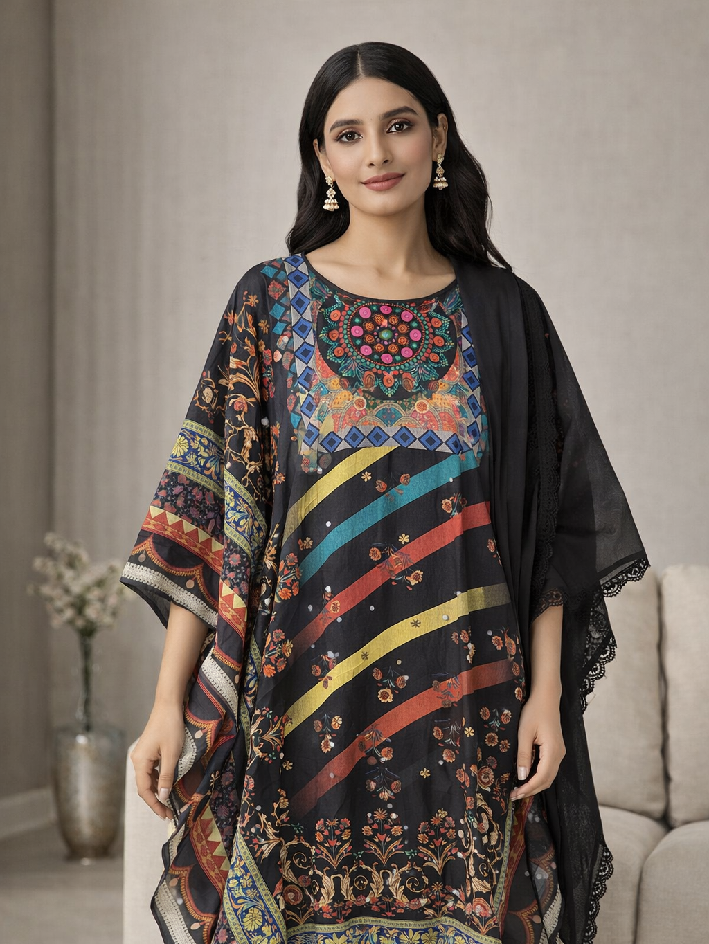 • Boho Style: Kaftan kurta with vibrant ethnic prints.